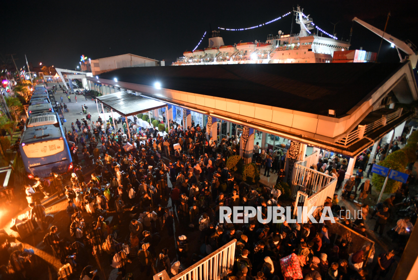REPUBLIKA.CO.ID, MEDAN -- Sejumlah pemudik menggunakan kapal tiba di Pelabuhan Bandar Deli Belawan, Medan, Sumatera Utara, Kamis (12/3/2026).