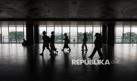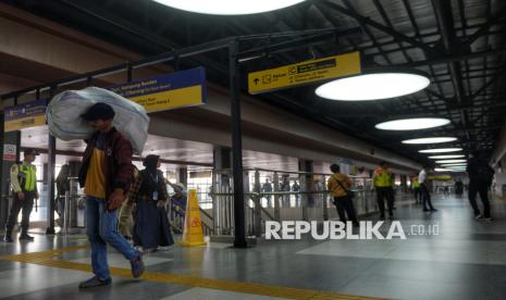Penumpang KRL berjalan di Stasiun Tanah Abang Baru, Jakarta, Jumat (17/10/2025). Stasiun Tanah Abang kini telah bertransformasi dan beroperasi dengan wajah barunya. Salah satu stasiun kereta terpadat tersebut kini mampu melayani hingga 300.000 penumpang per hari. Pengoperasian Stasiun Tanah Abang Baru ini menandai babak baru integrasi transportasi modern di jantung Jakarta yang lebih efisien, aman, dan nyaman bagi penumpang. (FOTO : Republika/Prayogi)