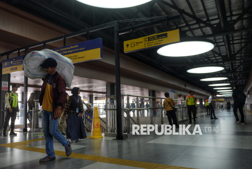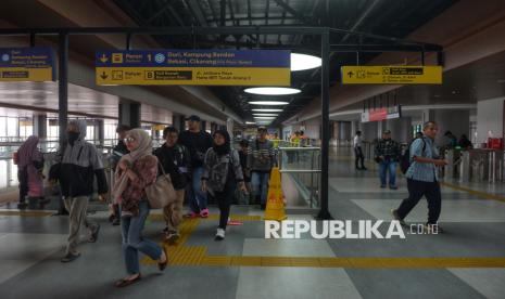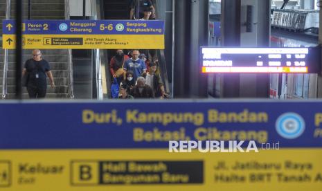 Penumpang KRL berjalan untuk masuk ke Stasiun Tanah Abang Baru, Jakarta, Jumat (17/10/2025). Stasiun Tanah Abang kini telah bertransformasi dan beroperasi dengan wajah barunya. Salah satu stasiun kereta terpadat tersebut kini mampu melayani hingga 300.000 penumpang per hari. Pengoperasian Stasiun Tanah Abang Baru ini menandai babak baru integrasi transportasi modern di jantung Jakarta yang lebih efisien, aman, dan nyaman bagi penumpang. (FOTO : Republika/Prayogi)