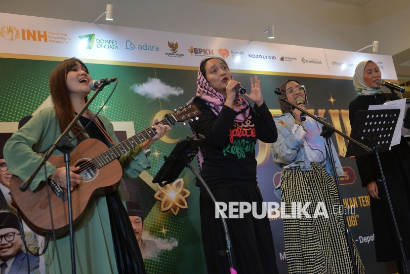 Penampilan grup musik Tanah Para Nabi saat acara Dzikir Nasional Republika di Masjid At-Thohir, Rabu (31/12/2025). (FOTO : Edwin Putranto/Republika)