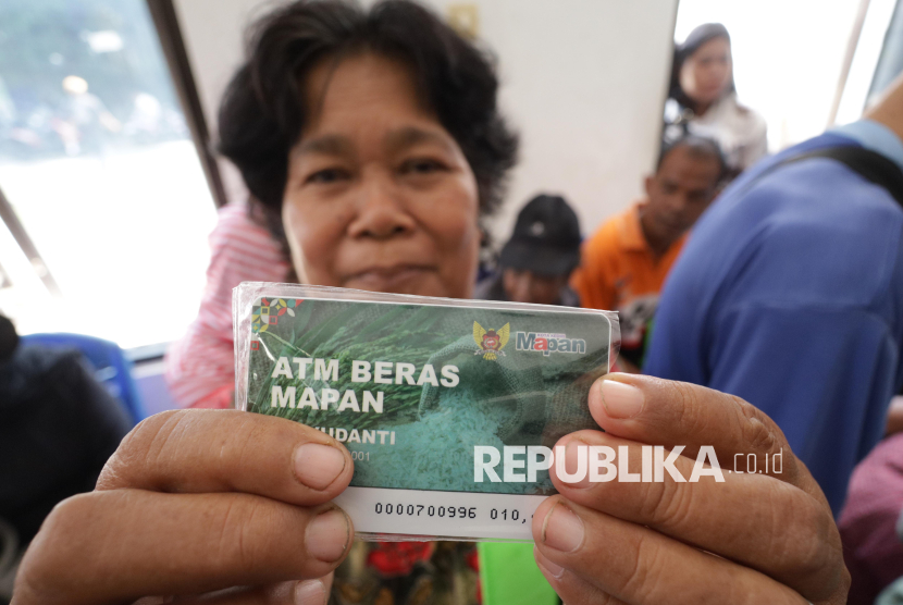 Warga penerima manfaat memperlihatkan katu ATM beras di Kelurahan Semampir, Kota Kediri, Jawa Timur, Kamis (16/4/2026). Penyaluran bantuan melalui program ATM beras untuk warga kurang mampu tersebut dilakukan secara serentak di seluruh kelurahan Kota Kediri untuk 4.285 keluarga penerima manfaat dengan masing-masing mendapatkan 5 liter beras per bulan guna mengurangi beban masyarakat. (FOTO : ANTARA FOTO/Prasetia Fauzani)