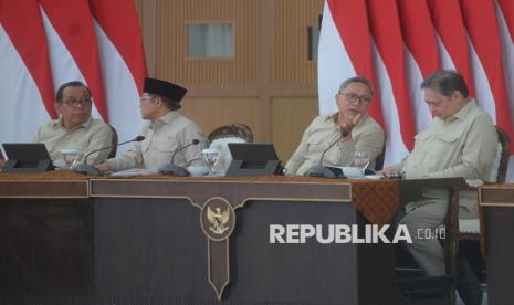 Presiden Prabowo Subianto saat menghadiri taklimat awal tahun di Hambalang, Bogor, Jawa Barat, Selasa (6/1/2026). Kegiatan tersebut dihadiri oleh seluruh menteri dan wakil menteri Kabinet Merah Putih, Panglima TNI, Kapolri, para Kepala Staf TNI, serta pimpinan lembaga negara. Kegiatan ini dilaksanakan untuk mengevaluasi kinerja pemerintahan sepanjang tahun 2025. Presiden Prabowo juga memberikan arahan kepada jajarannya dalam merealisasikan program kerja pada tahun 2026. (FOTO : Republika/Prayogi)