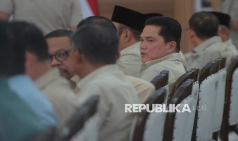 Menpora Erick Thohir saat menghadiri taklimat awal tahun Presiden di Hambalang, Bogor, Jawa Barat, Selasa (6/1/2026). Kegiatan tersebut dihadiri oleh seluruh menteri dan wakil menteri Kabinet Merah Putih, Panglima TNI, Kapolri, para Kepala Staf TNI, serta pimpinan lembaga negara. Kegiatan ini dilaksanakan untuk mengevaluasi kinerja pemerintahan sepanjang tahun 2025. Presiden Prabowo juga memberikan arahan kepada jajarannya dalam merealisasikan program kerja pada tahun 2026. (FOTO : Republika/Prayogi)