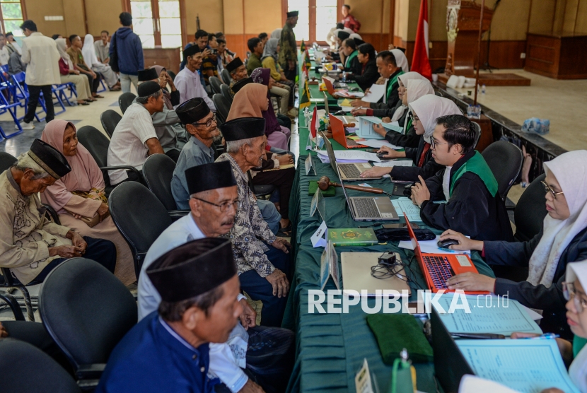 REPUBLIKA.CO.ID, BANTEN -- Sejumlah pasangan pengantin beserta saksi nikah mengikuti sidang isbat nikah di Rangkasbitung, Kabupaten Lebak, Banten, Rabu (10/12/2025).
