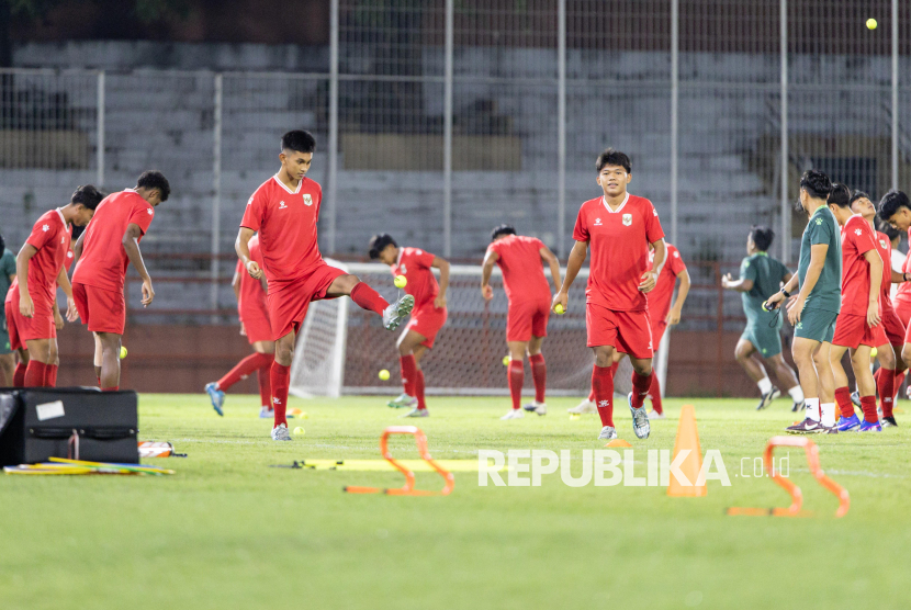REPUBLIKA.CO.ID, SURABAYA -- Pesepak bola Timnas Indonesia U-17 mengikuti latihan menjelang laga ASEAN U-17 Boys Championship atau Piala AFF U-17 2026 di Stadion Gelora 10 November, Surabaya, Jawa Timur, Ahad (12/4/2026).