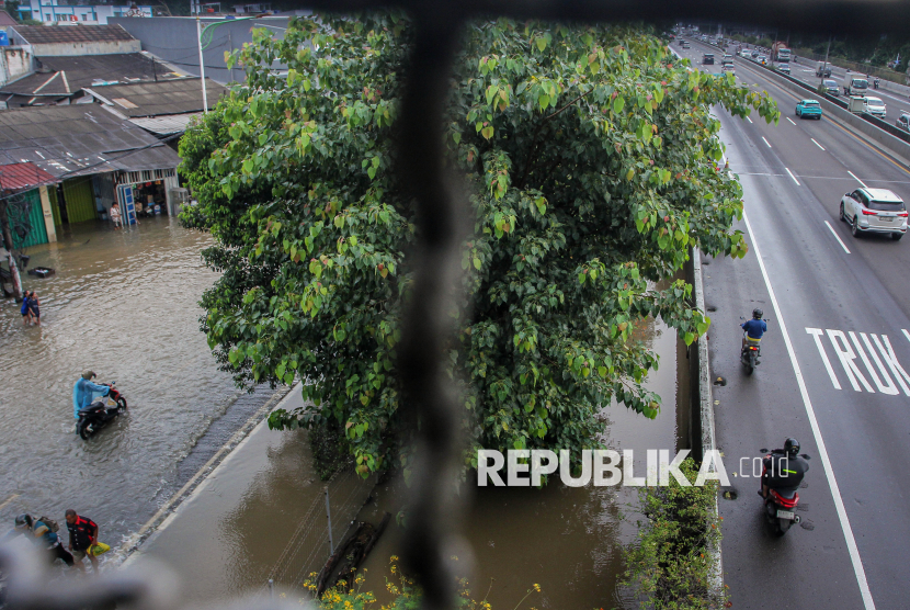 REPUBLIKA.CO.ID, JAKARTA -- Pengendara sepeda motor melintas di Jalan Tol Lingkar Luar untuk menghindari banjir di Cengkareng, Jakarta, Jumat (23/1/2026).