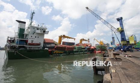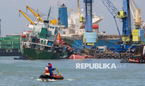 REPUBLIKA.CO.ID, SURABAYA -- Petugas melakukan upaya evakuasi peti kemas dari atas kapal kargo KM Pacific 88 yang miring di Dermaga Jamrud Selatan, Pelabuhan Tanjung Perak, Surabaya, Jawa Timur, Senin (2/2/2026).