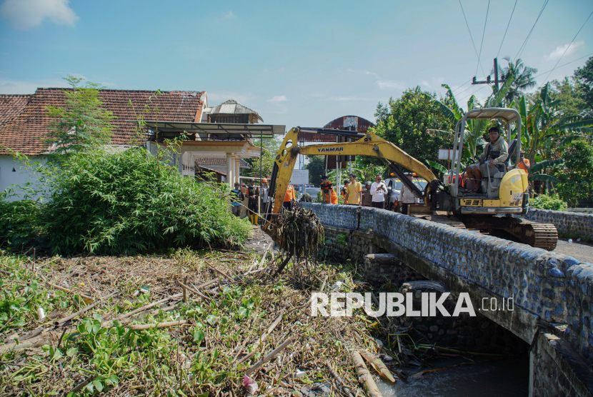 Petugas menggunakan alat berat mengangkut sampah yang menyumbat aliran sungai sehingga menyebabkan banjir di Rowokangkung, Lumajang, Jawa Timur, Sabtu (1/11/2025). Pemkab Lumajang memberikan bantuan air bersih dan makanan siap saji untuk korban banjir serta melakukan normalisasi sejumlah sungai karena luapan airnya telah menyebabkan 895 rumah warga tergenang banjir di wilayah tersebut. (FOTO : ANTARA FOTO)