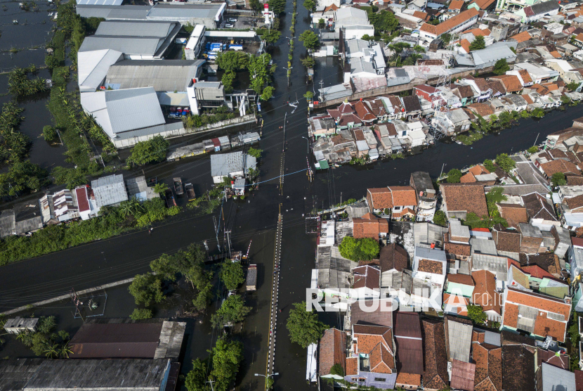 Foto udara kondisi jalur rel kereta api yang terendam banjir di kawasan Tambakrejo, Semarang, Jawa Tengah, Rabu (29/10/2025). KAI Daop 4 Semarang pada Rabu (29/10) pukul 05.00 WIB membatalkan empat perjalanan kereta api, di antaranya KA 496 Kedung Sepur relasi Semarang Poncol‚ Ngrombo, KA 495 Kedung Sepur relasi Ngrombo‚ Semarang Poncol, KA 268 Banyubiru relasi Semarang Tawang‚ÄìSolo Balapan, dan KA 267 Banyubiru relasi Solo Balapan‚ Semarang Tawang, serta mengubah relasi KA 261 Blora Jaya dan KA 266 Ambarawa Ekspres akibat banjir yang merendam jalur rel kereta api di kawasan tersebut sejak Selasa (28/10). (FOTO : ANTARA FOTO/Aprillio Akbar)