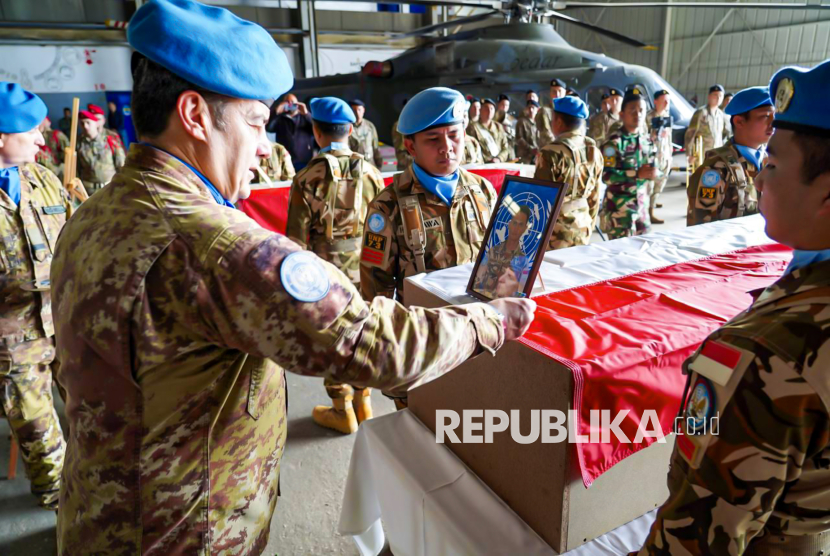 UNIFIL menyelenggarakan upacara Memorial Service sebagai bentuk penghormatan terakhir kepada tiga prajurit TNI yang gugur dalam misi perdamaian dunia di Lebanon Selatan, sebelum dipulangkan ke tanah air.